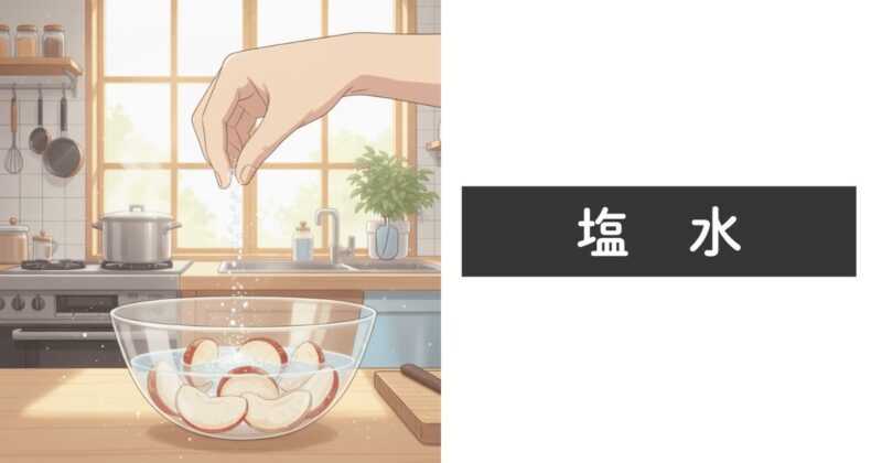 塩分(ナトリウムイオン)には、ポリフェノールオキシダーゼ(酸化酵素)の働きを強力に阻害する効果があります。また、水に浸けることで一時的に酸素からも遮断できます。