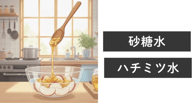 高濃度の砂糖水やハチミツ水は粘度が高く、リンゴの表面をコーティングして酸素の接触を防ぎます(酸素バリア)。また、ハチミツには特定の酵素が含まれていて、変色を防ぐとも言われています。