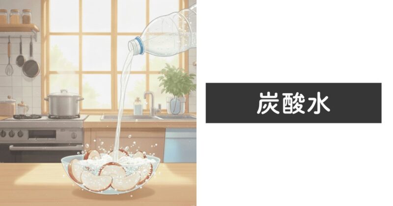 酸素の代わりに、炭酸水に含まれる二酸化炭素がリンゴの表面を取り囲むことで酸化を防ぎます。また、弱酸性であることも酵素の働きを抑えることになります。