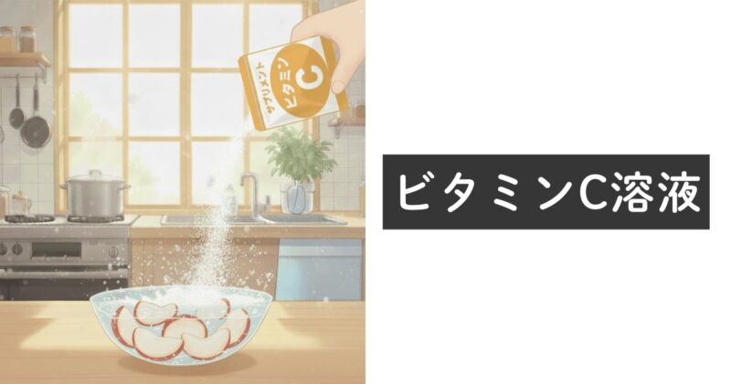 レモン汁と同じ原理で、ビタミンCがリンゴのポリフェノールより先に酸素と結びつき、リンゴの酸化を防ぎます。余計な香りや酸味が少ない純粋な還元作用を利用します。