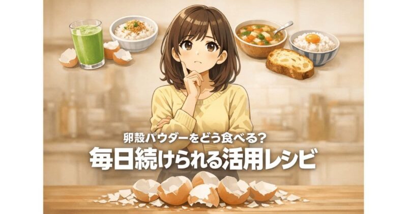 最も手軽なのは、朝のスムージーや運動後のプロテインシェイクに小さじ4分の1程度の卵殻パウダーを加える方法です。パウダーが十分に細かければ、食感に違和感を感じることはほとんどありません。