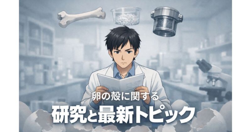 食品科学・栄養学分野では、卵殻を洗浄・加熱・粉砕して作られる「卵殻カルシウム粉末」を用いた研究が進められています。