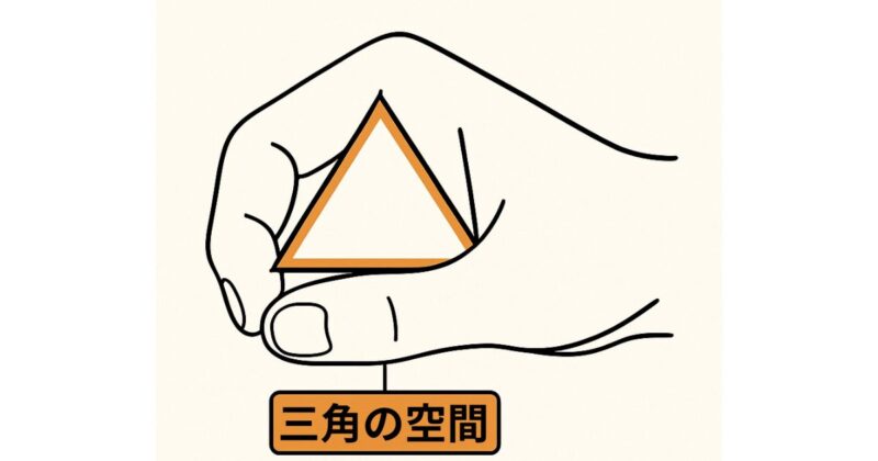 人間の手は、親指と4本の指で物を包み込むとき、自然と「三角の空間」をつくるようにできています。この形は「三点で支える」構造になっていて、ご飯を握るときに最も安定する形なのです。