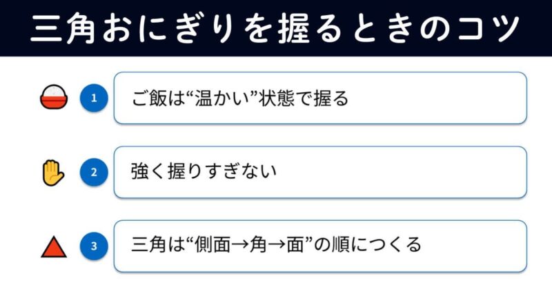 コツは、3つだけ。家庭で失敗しない三角おにぎりの作り方のポイントを、シンプルにまとめて紹介します。